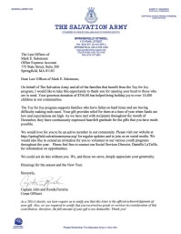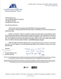 At the Law Offices of Mark E. Salomone, our Massachusetts personal injury attorneys and staff live and work in the community and believe strongly in giving back. We feel it is our responsibility to make a positive impact in the communities we serve in Massachusetts. We are passionate in our efforts to support worthy organizations - not only with monetary grants and donations, but also by donating our resources and volunteering our personal efforts. Below is a list of our charitable giving partners.