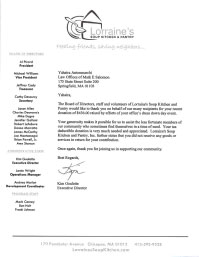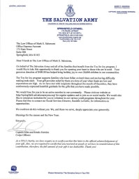 Each year, the firm selects 12 charities that are meaningful to our employees and/or surrounding communities to be a part of our Charitable Staff Dress Down Program. The chosen organizations are named monthly beneficiaries and receive a donation from our staff in the month it is designated. Funds are raised through employee "Casual Friday" contributions, with Attorney Mark Salomone matching 100% of the total monthly employee donations. Below is the list of our current beneficiaries.